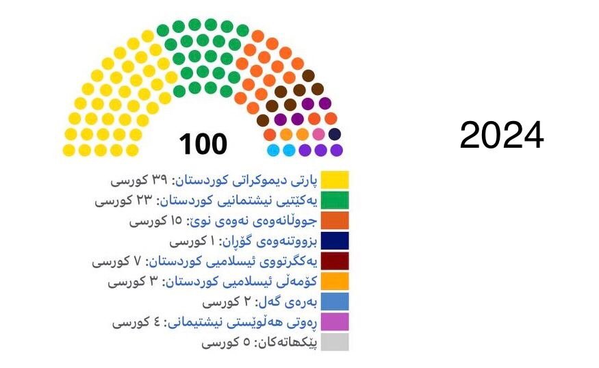سەیر بکەن لە ٢٠١٨ بە تۆماری کۆمیسۆنی هەرێم، یەکگرتوو و کۆمەڵ ١٢ کورسیان هێناوە، بەڵام لە ٢٠٢٤ بە هەردووکیان ١٠ کورسیان هێناوە، واتا ٢ کورسییان لە دەستداوە.